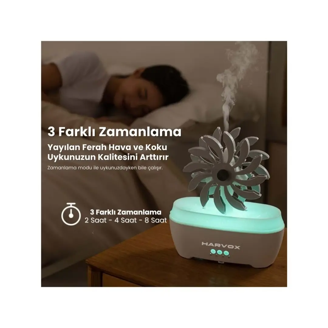Dönen Değirmen Tasarımı: Dönen mekanizması ile buharı geniş alana yayarak etkili nemlendirme sunar
