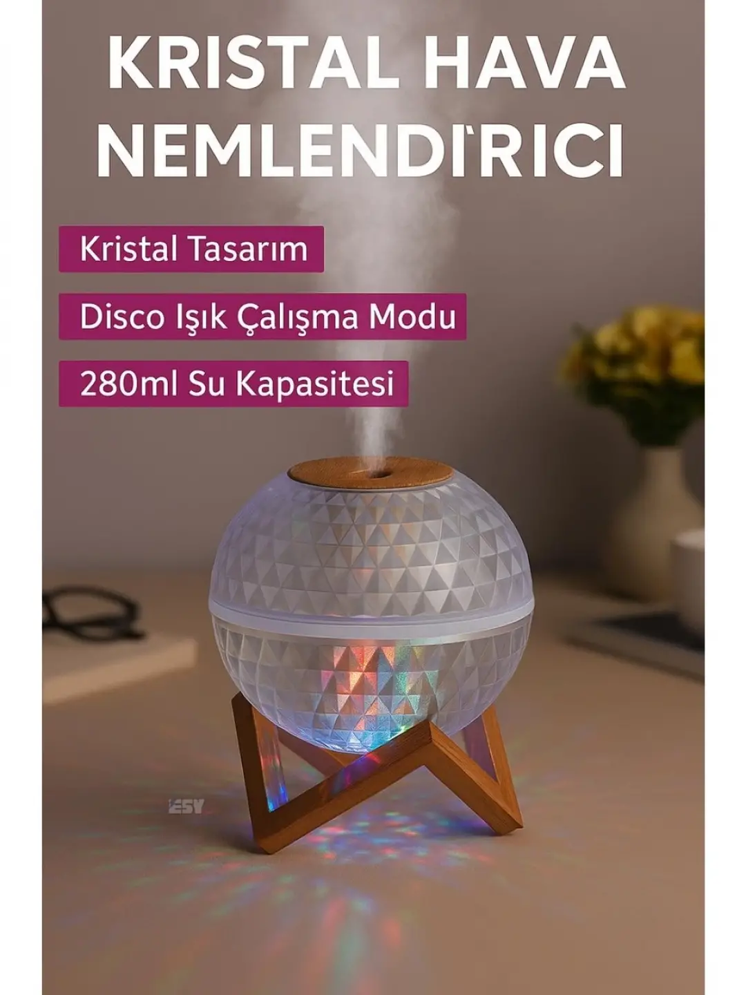 Kristal Küre Mini Nemlendirici, güçlü işlevselliği ve zarif tasarımı bir arada sunuyor. LED ışıklarla donatılmış bu zarif cihaz, evinizde veya ofisinizde hem atmosferi güzelleştirir hem de havayı nemlendirir. Üstün su tankı kapasitesi (yaklaşık 350 ml) sayesinde 6 saat kesintisiz kullanım imkânı sağlarken, su seviyesi düştüğünde cihaz otomatik olarak kapanır . Bu sayede hem güvenli hem de pratik bir deneyim sunar .