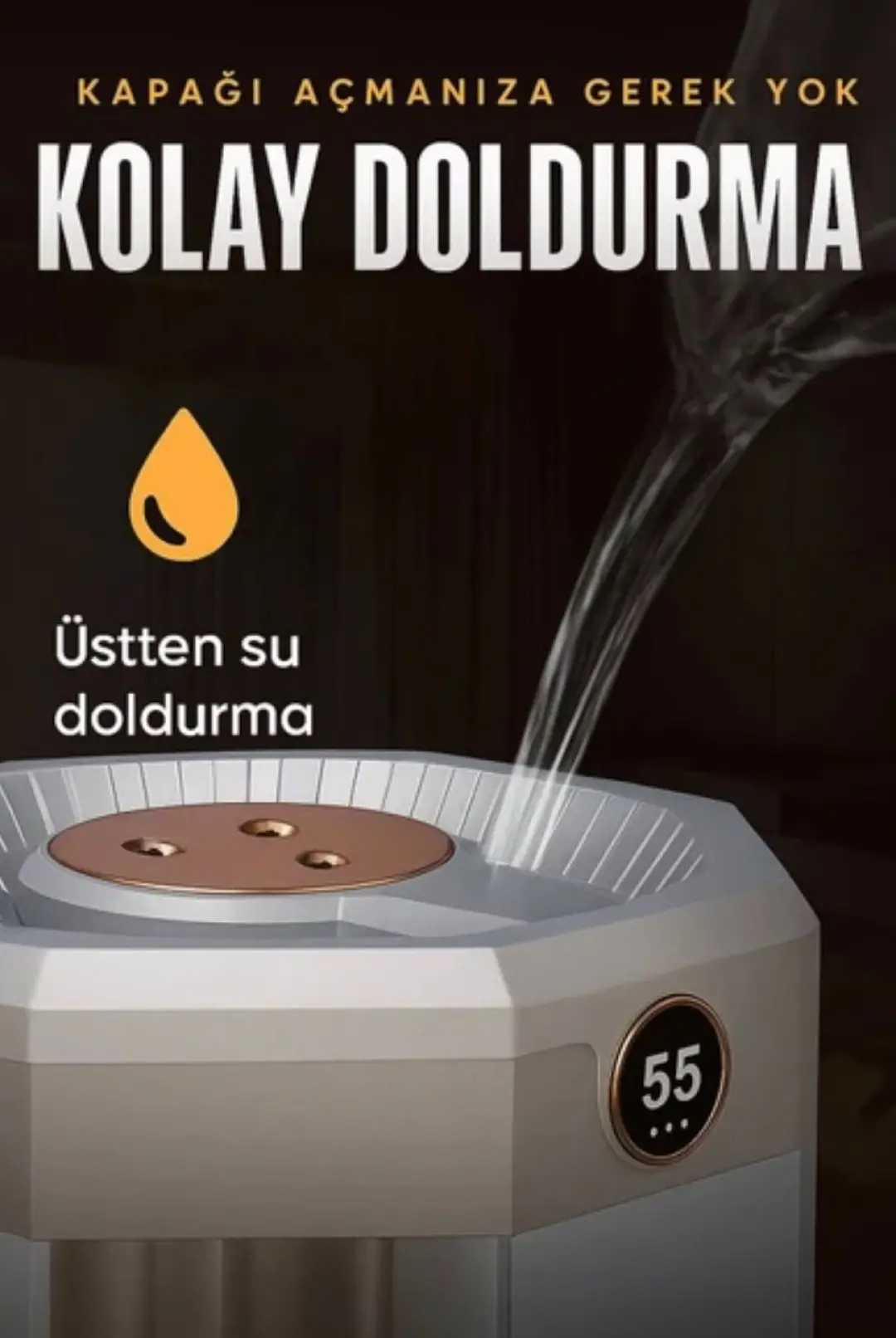 Dijital Ekranlı Ultrasonik Hava Nemlendirici Aroma Difüzörü Yüksek Buhar Gücü Sessiz Çalışma 3 Nozullu Püskürtme Aromaterapi Cihazı 1,3 litre
