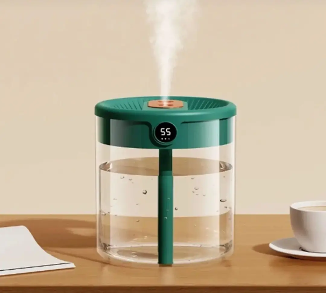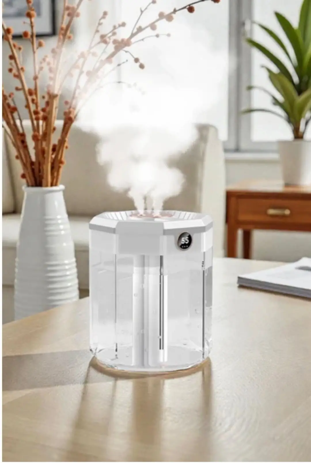 Modern tasarımı ve güçlü performansıyla öne çıkan bu şeffaf gövdeli dijital hava nemlendirici, ortam havasını nemlendirirken estetik bir görünüm sunar.