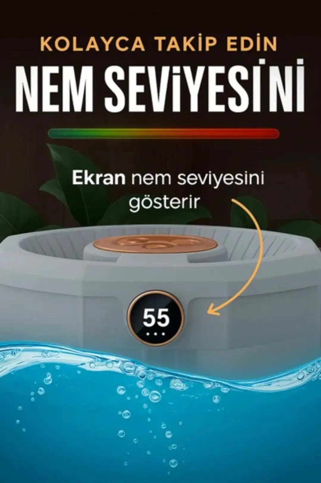 Gelişmiş işlevsellik: Gelişmiş bir LCD nem göstergesi ile donatılan bu nemlendirici, iç mekan nem seviyelerini tek bakışta izlemenize olanak tanır ve optimum konfor ve sağlık yararları sağlar.